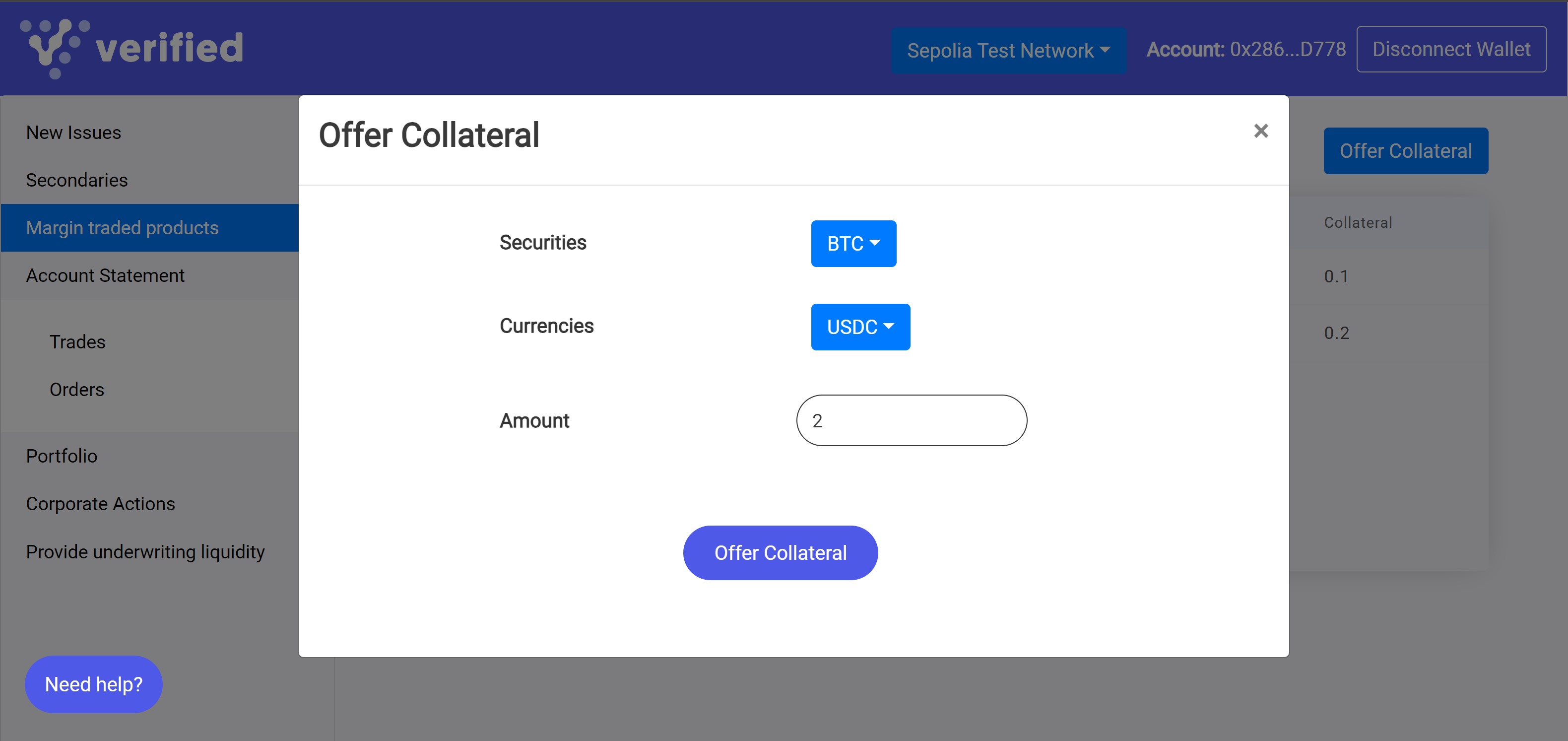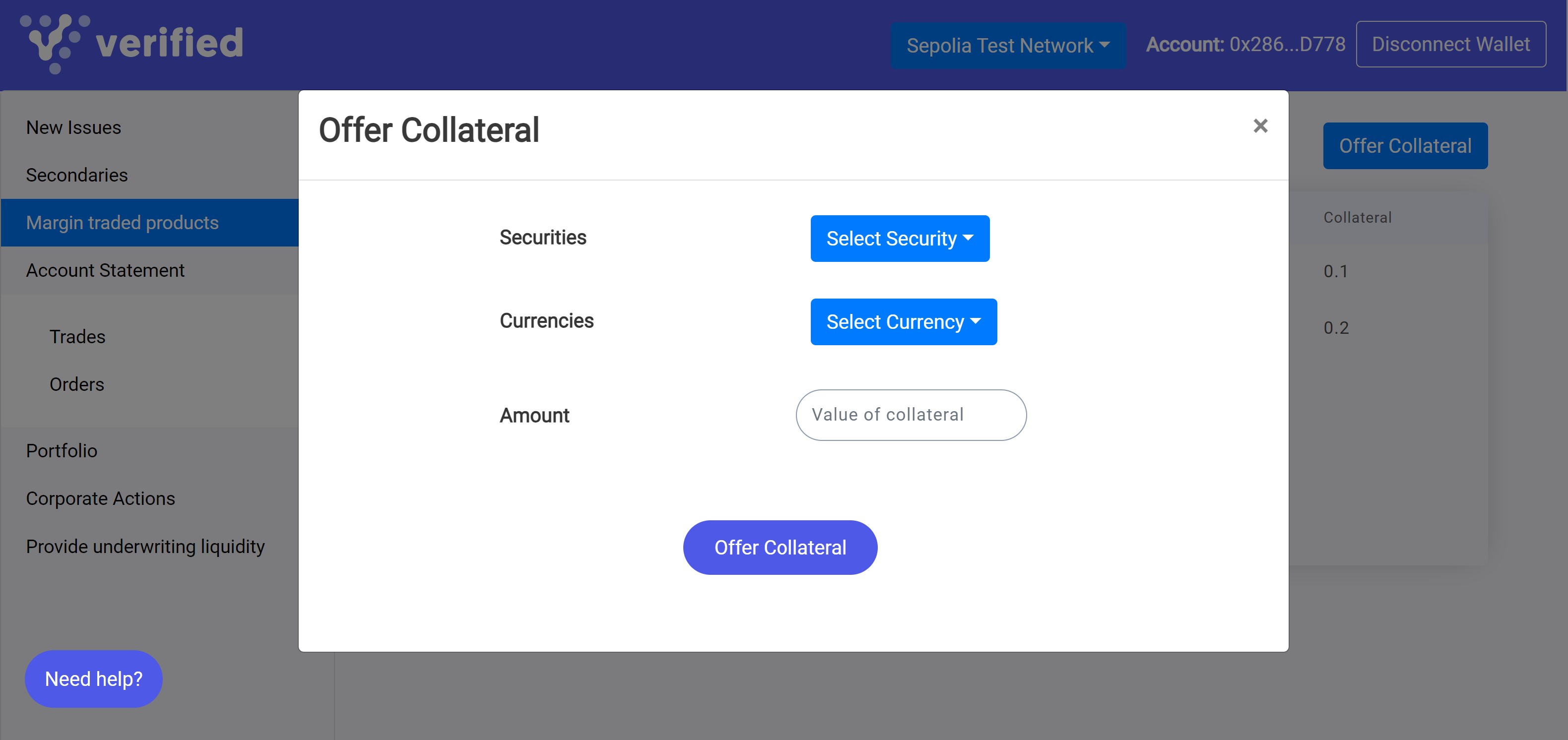 To post Collateral to a Margin Pool, click on the Post Collateral button on Margin Traded Products menu in the web application. Collateral covers margin money, financing costs and potential losses.